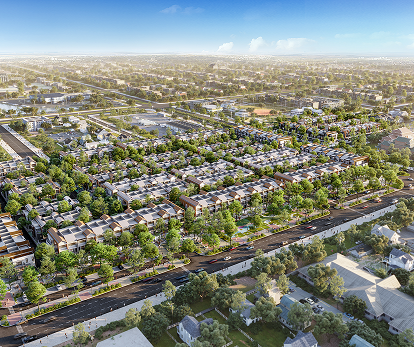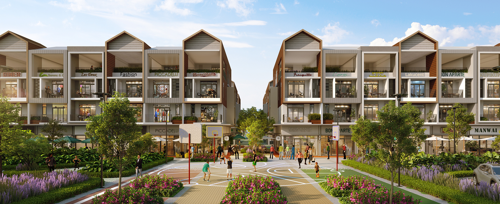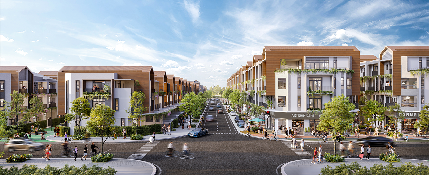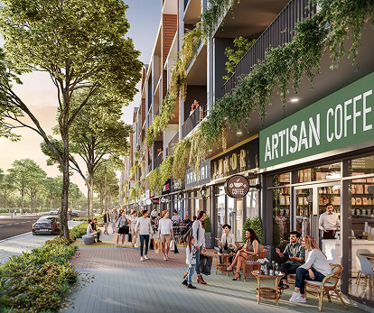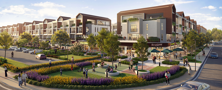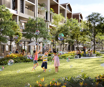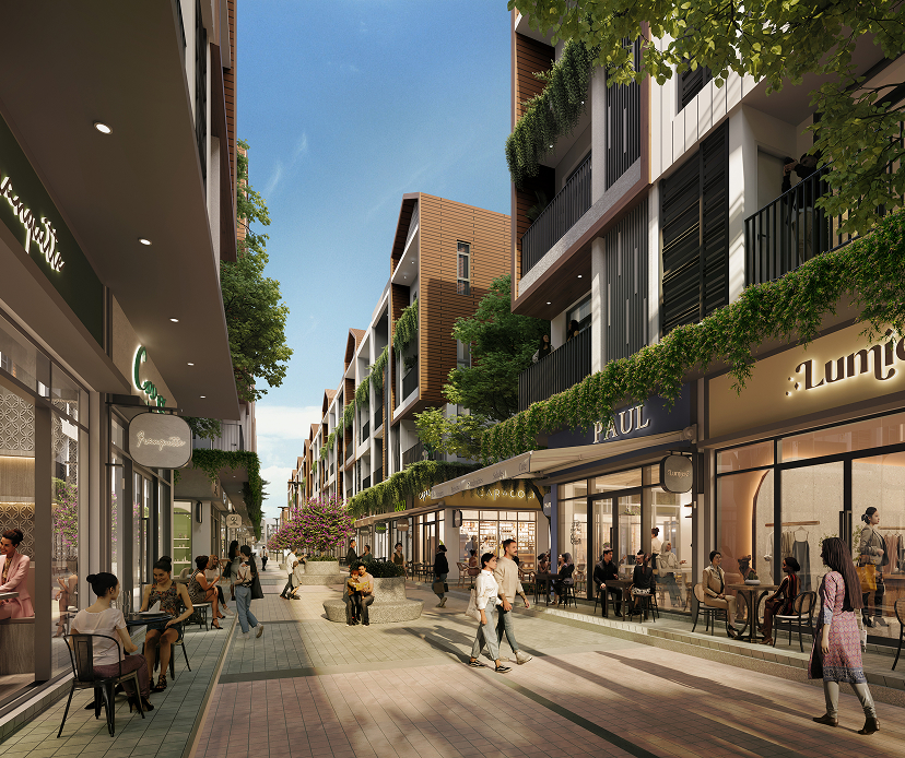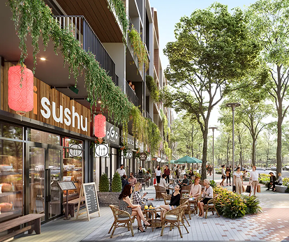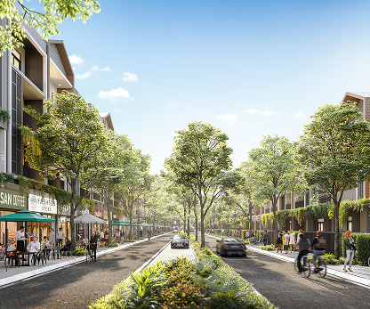 Mỗi căn nhà phố đều có từ hai mặt tiền sở hữu tầm nhìn rộng mở và thoáng đãng. Một mặt hướng về phố đi bộ xanh ngát, mặt khác hướng về đại lộ chính nhộn nhịp, mở ra triển vọng tươi sáng và vô vàn cơ hội cho dịch vụ ẩm thực ngoài trời.