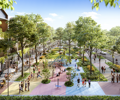 Là trái tim của cộng đồng Artisan Park, nơi đây đáp ứng nhu cầu đa dạng của mọi độ tuổi, từ các cửa hàng bán lẻ, khu vui chơi, thiết bị thể dục thể thao, sân bóng rổ đến vườn thư giãn xanh mát. Những hàng cây xanh rợp bóng bao phủ quảng rộng lớn tỏa bóng mát cho cư dân và các vị khách tại đây.
